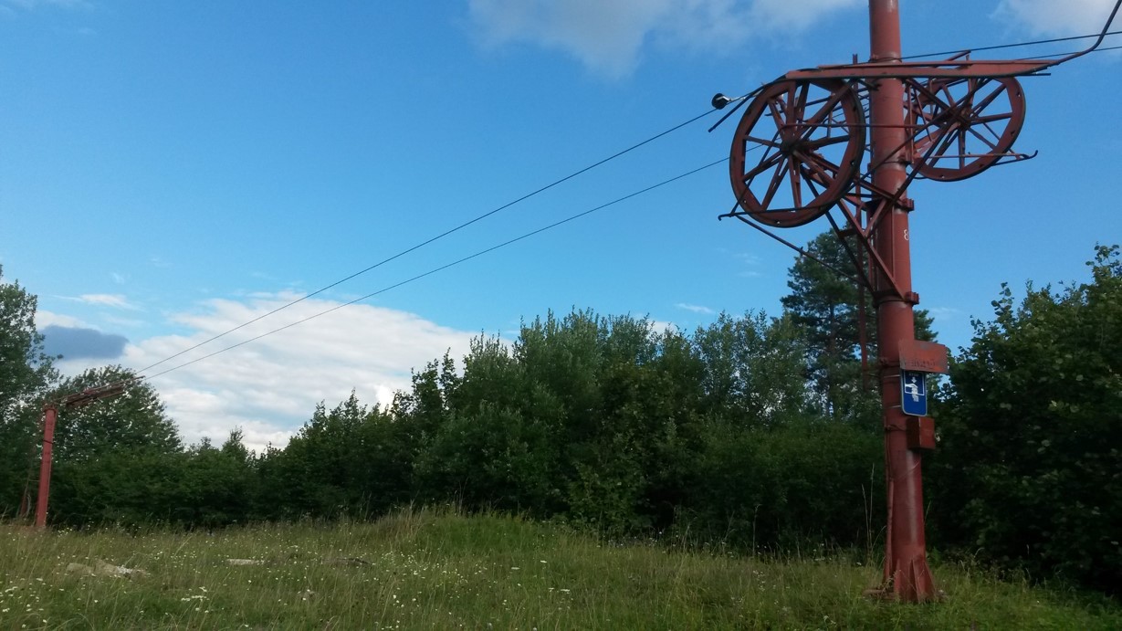 Tatrapoma F. V terénu jsou k nalezení už jen základy dolní stanice, kdysi široká a celkem prudká sjezdovka pomalu zarůstá.