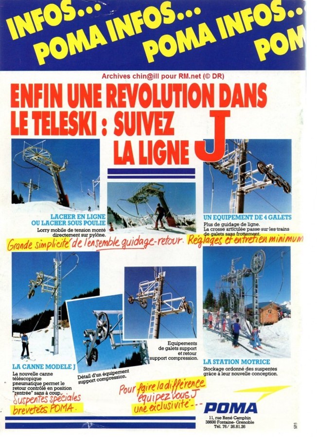 převzaté z webu remontees-mecaniques.net. Třetí vlek tohoto typu najdete ve středisku Gerardmer ve Vogézách, další podobný vlek v tomto pohoří (Loges ve areálu Les Hautes Navières je již mimo provoz. Na vleku v Les Houches u Chamonix pak byly nedávno unašeče J nahrazeny klasickými. Poslední dva nalezené vleky jsou dodnes v provozu v malém středisku L´Abbaye v pohoří Jura. J