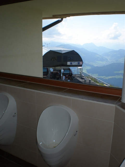 pohled od pisoaru pro nadšence panoramat a lanovek