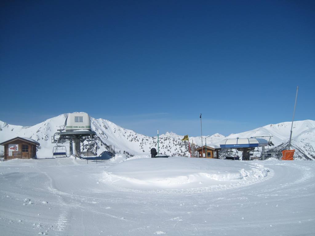 horní stanice stejné lanovky s vlekem Motta II. v pozadí (nejvyšší bod areálu)