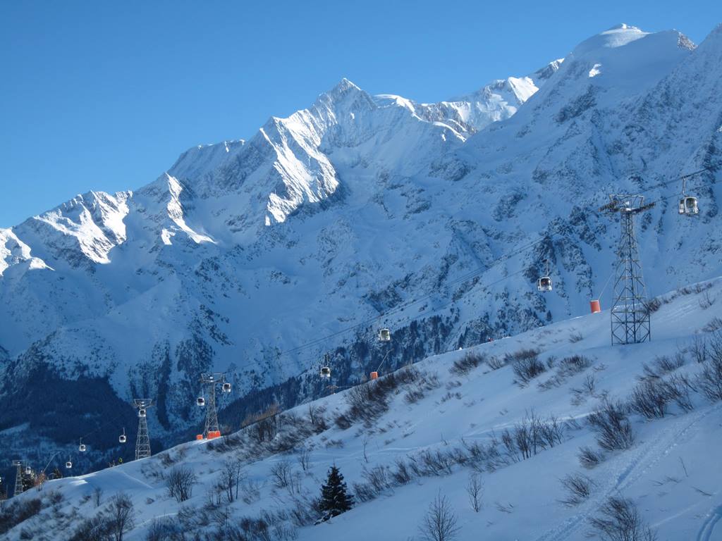 a jeho horní stanice s perfektním výhledem, jak na Mont-Blanc tak na celou lyžařskou oblast (Megéve, Combloux...)