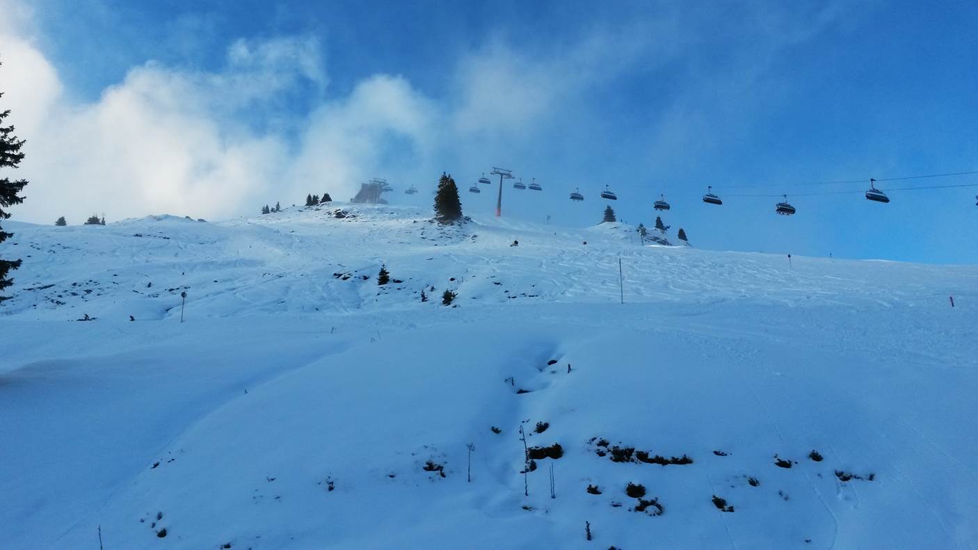 Den 1.: Projety jižní svahy nad Saalbachem a Hinterglemmem a propojení do Fieberbrunnu.