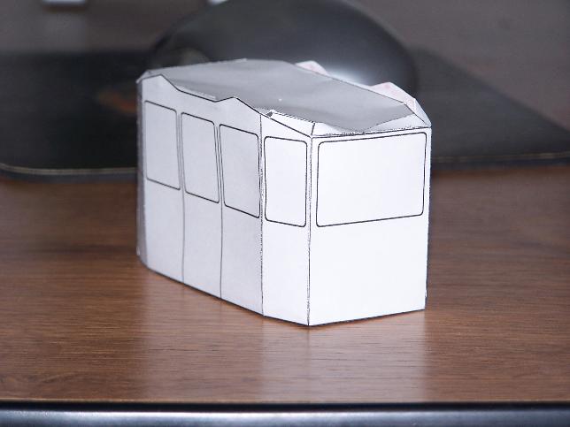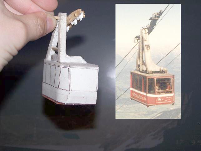 Kabina ala Kitzsteinhorn(cca 1996)Podle fotek a prospektů jsem tvaroval kabinu (v 3ds-ku r.2). Pak jsem to poskládal do roviny a vytiskl a slepil. Podle toho pak bratranec vylepšil a slepil kabinu, která je na fotkách.