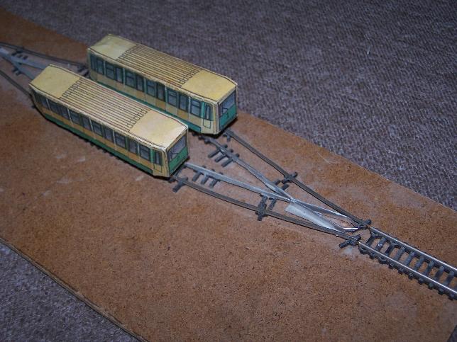 ). Abtova výhybna vlastní výroby (padla na to i jedna TT-čková kolej); podvozky taky vlastní výroba (i když jsem měl koupené i dva vagónky a dvě obyčejné výhybky, jak psali v návodu k vystřihovánce