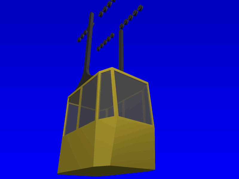 (cca 1991)Podle jedné fotky jsem udělal i model nové lanovky na Lomničák, ale modelu už není. Jediná památka na něj je nedodělaný pokus o vizualizaci v 3ds-ku o pět let později, kterou jsem dělal právě podle toho modelu.
