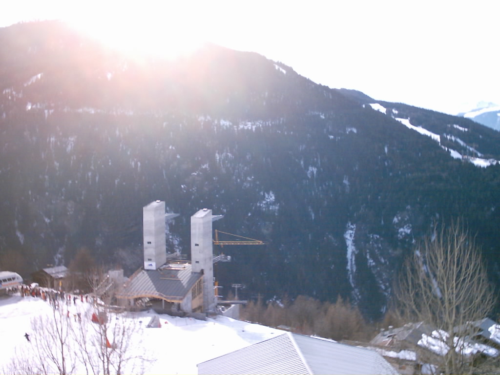 Jde o lanovku Vanoise Express spojujici francouzska lyzarska stredisla La Plagne a Les Arcs v resort Paradiski. Fotka je tusim z roku 2002 kdy byla lanovka teprve ve vystavbe. Na fotografii je stanice na strane Les Arcs v Peisey-Vallandry. Napoveda na podrobnejsi pruzkum praveho horniho rohu fotografie smerovala k tomu, ze tam je videt druha rozestavena stanice na strane La Plagne. Nejake info napriklad zde http://en.wikipedia.org/wiki/Vanoise_Express