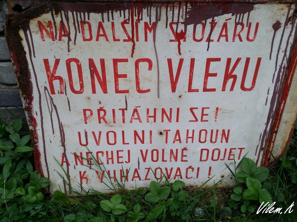 Dávám zde netypickou hádanku. Jedná se o 2 cedule ze dvou zvratkových vleků - první je z Královce, druhá z Jeleňovské. Otázka zní: Proč na první ceduli doporučují nechat dojet uvolněný závěs k vyhazovači a na druhé doporučí přesný opak, tedy zůstat v plném závěsu?