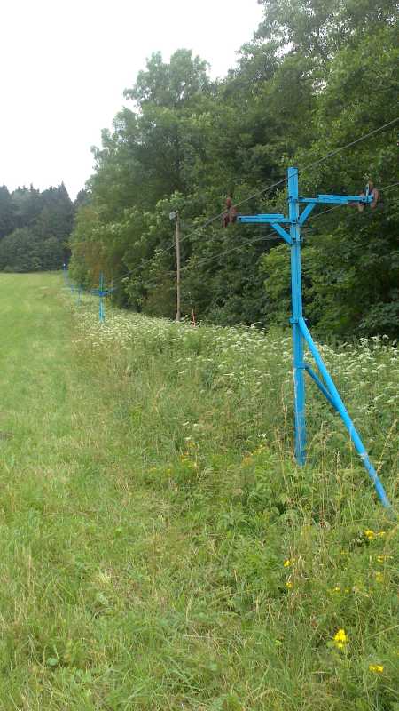Nicmene pan rikal, ze mel cely 450m vlek, ktery ale uz nemuze kvuli CHKO ci cemu provozovat a tak by v zasade mel i sloupy a vratnou a unasece a baterie, ale lan bylo snad poskozene a pretrzene vyvazeckou...