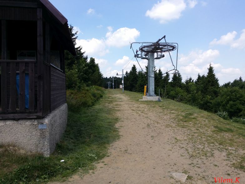 Bohužel omezení na 200 kB dost limituje fotky a plánovaná nápověda z přeposlední fotky 4a tak není moc zřetelná. Je tam cedule s nápisem POZOR.... a bílý patník z červenou špicí. Tento vlek slouží jako přibližovací k většímu areálu.