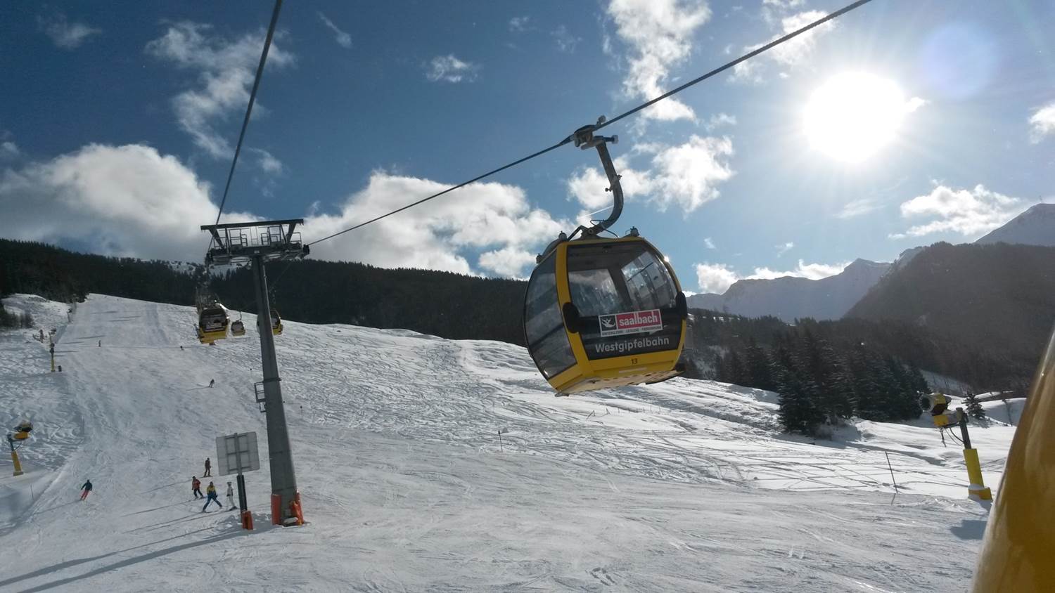Den 1.: Projety jižní svahy nad Saalbachem a Hinterglemmem a propojení do Fieberbrunnu.