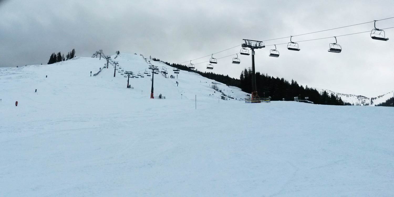 Den 1.: Projety jižní svahy nad Saalbachem a Hinterglemmem a propojení do Fieberbrunnu.